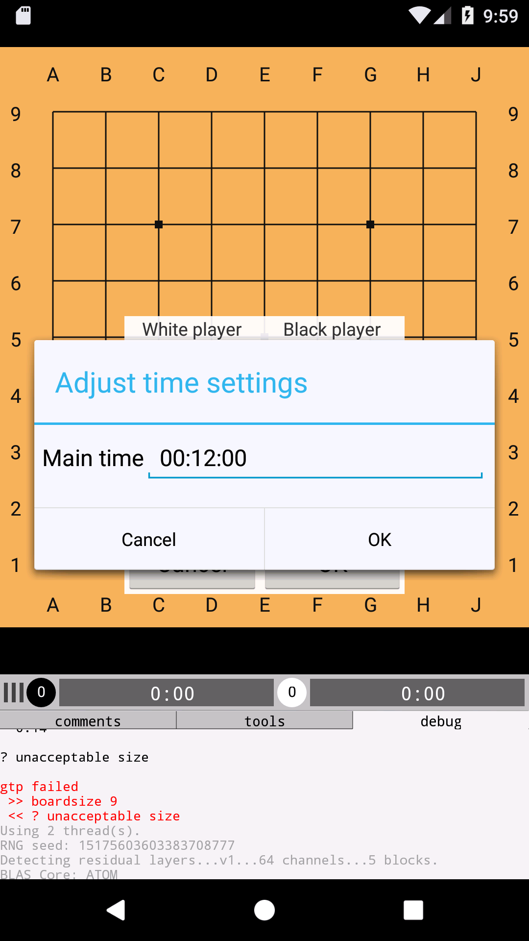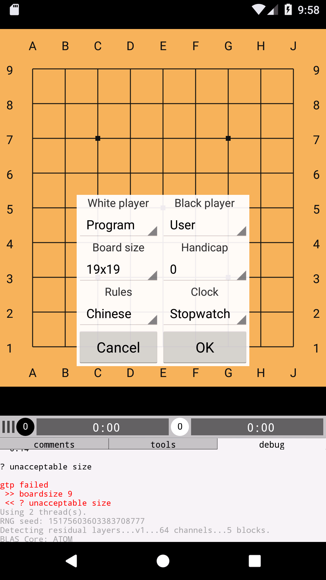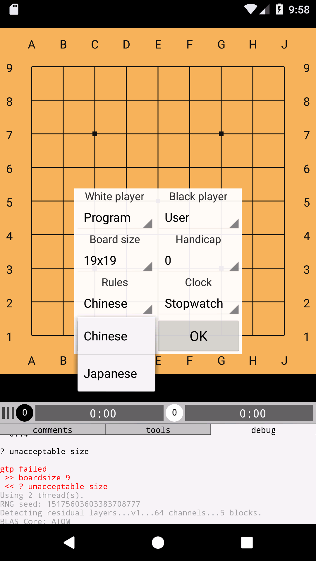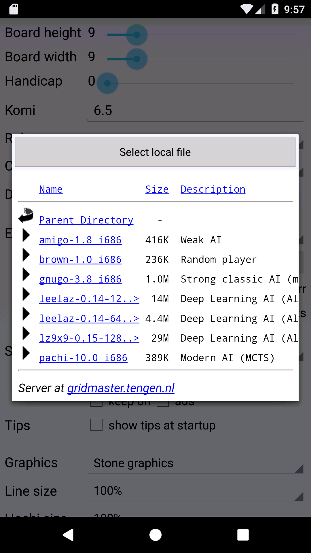Select leelaz-0.14-64.. for 19x19 (or lz9x9 for 9x9) |